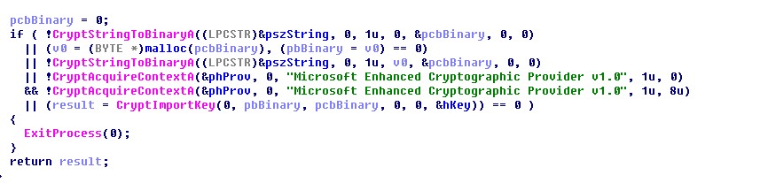 病毒加密前会在本地生成rsa密钥对,随后会将生成的公钥和硬编码的rsa公钥一同导入,硬编码公钥用于加密本地生成的rsa密钥信息,AES文件加密密钥将被本地生成的rsa公钥加密。