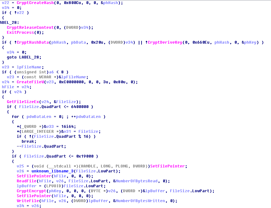 v1.6版本文件加密使用AES-ECB进行加密,加密使用WinCryptAPI,密钥为生成的0x20字节的随机值计算sha256所得。
