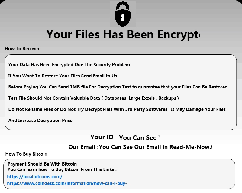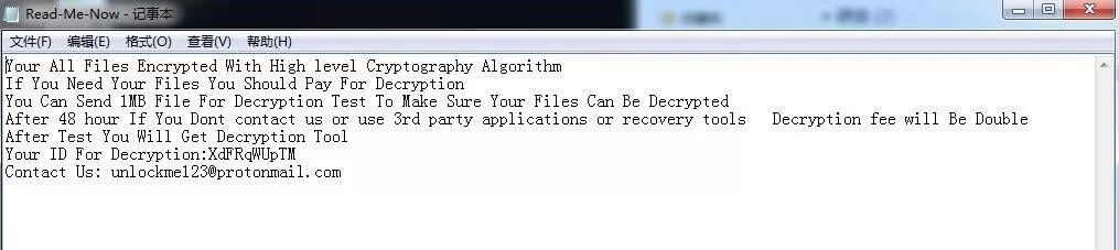 病毒同时会留下名为Read-Me-Now.txt的勒索说明文档,要求联系指定邮箱购买解密工具