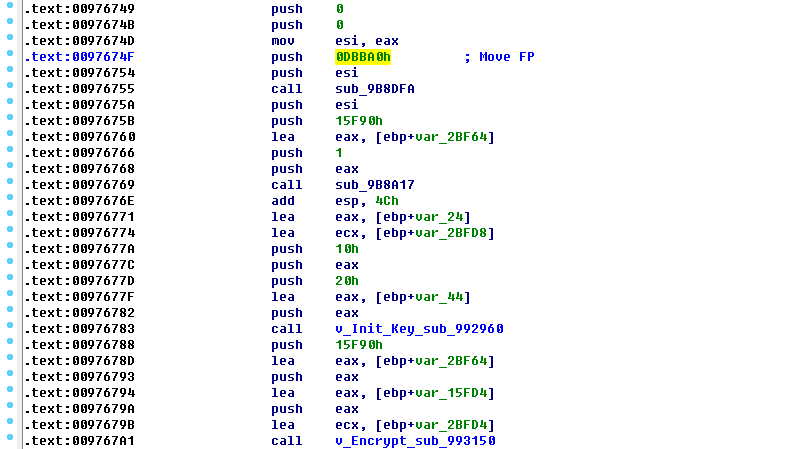 加密后如果为大文件则向后移动文件指针0xDBBA0处继续加密0x15F90字节大小内容
