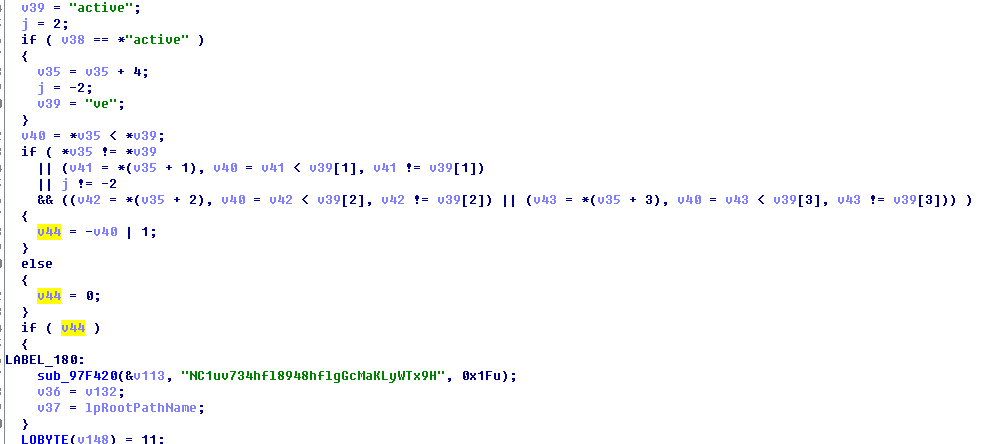 随后对服务器返回结果进行判断是否正常,当服务接口失活情况则拷贝一个硬编码密钥NC1uv734hfl8948hflgGcMaKLyWTx9H进行备用