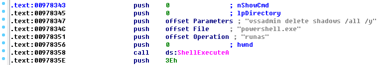 病毒运行后首先使用PowerShell命令行删除卷影