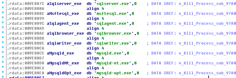3.病毒加密前会结束若干个数据库软件的进程,加密文件时会避免加密Windows,eScan等文件夹;
